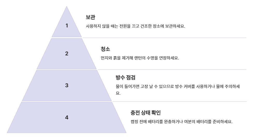 랜턴의 밝기는 루멘(Lumen)으로 측정되며, 사용 목적에 따라 적절한 밝기를 선택하세요.