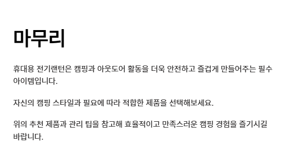 - 장점: 다양한 기능으로 캠핑의 편리함 극대화.