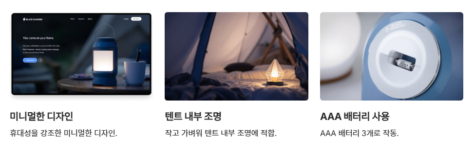 - 특징: 미니멀한 디자인과 휴대성을 강조한 랜턴.
